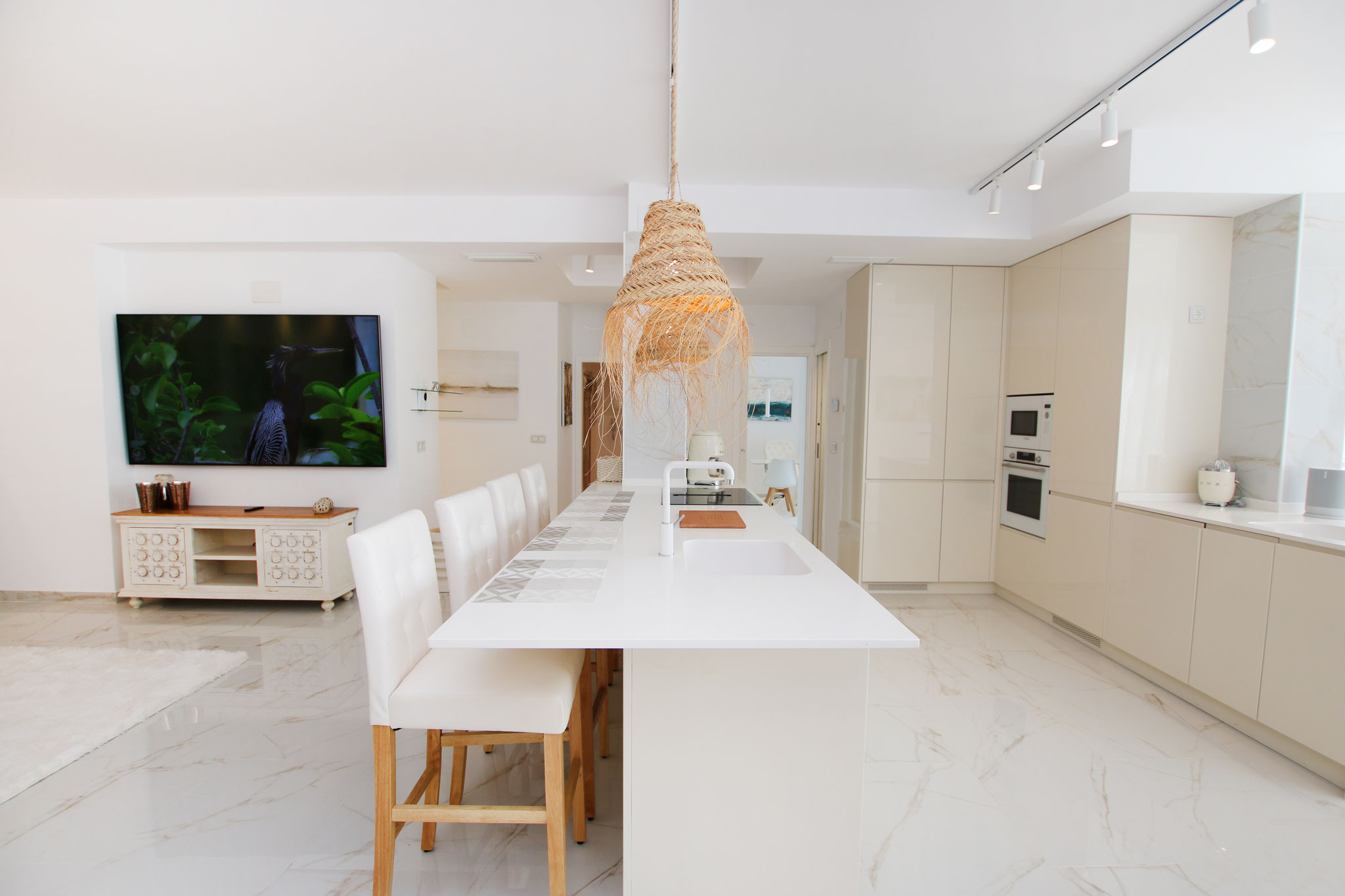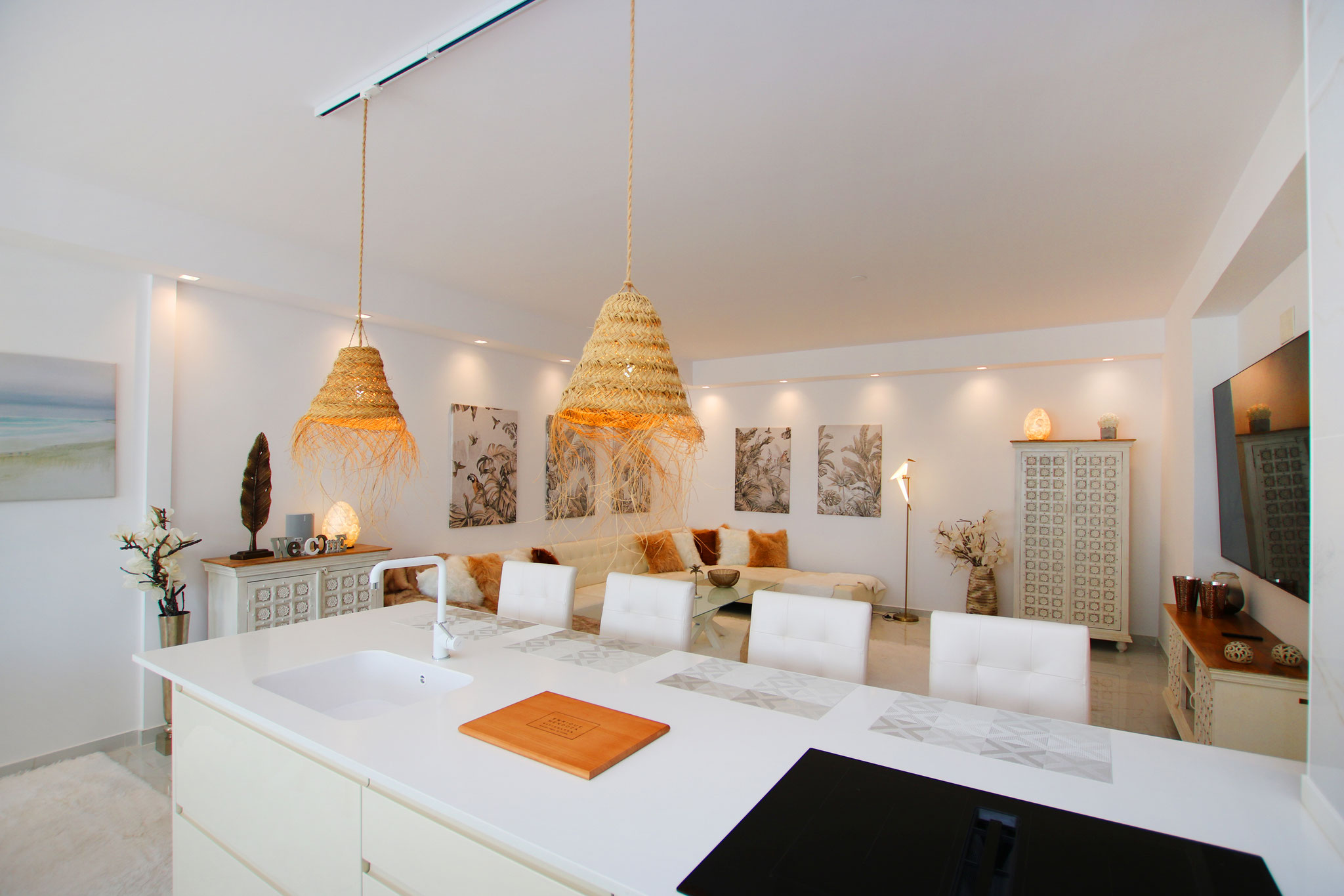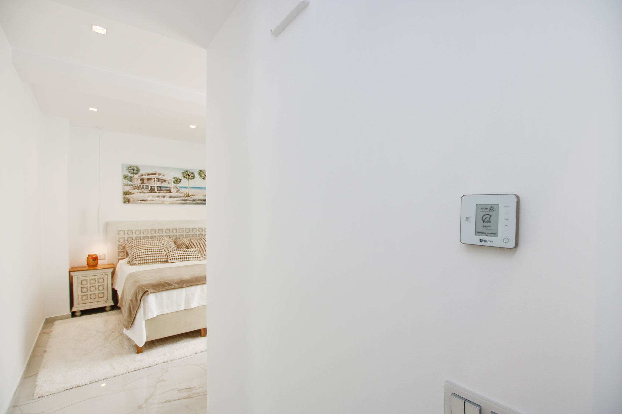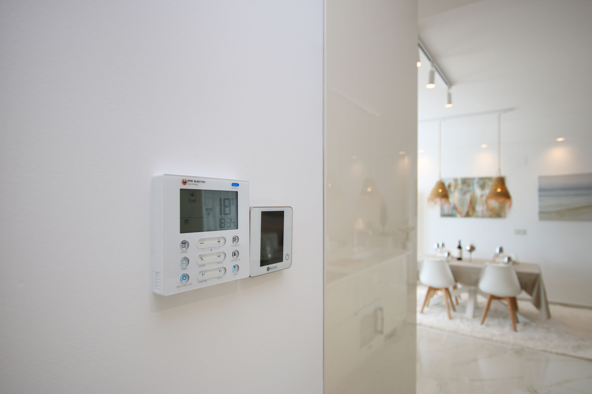 Constructed and renovated into very light colors, and with high ceilings the apartment is extremely modern, also with the newest technique for solar panels, and Smart-system for controlling the AC/electricity etc).